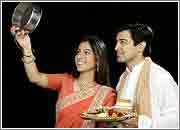 undertaking their first Karva Chauth fast after marriage. A newly married
